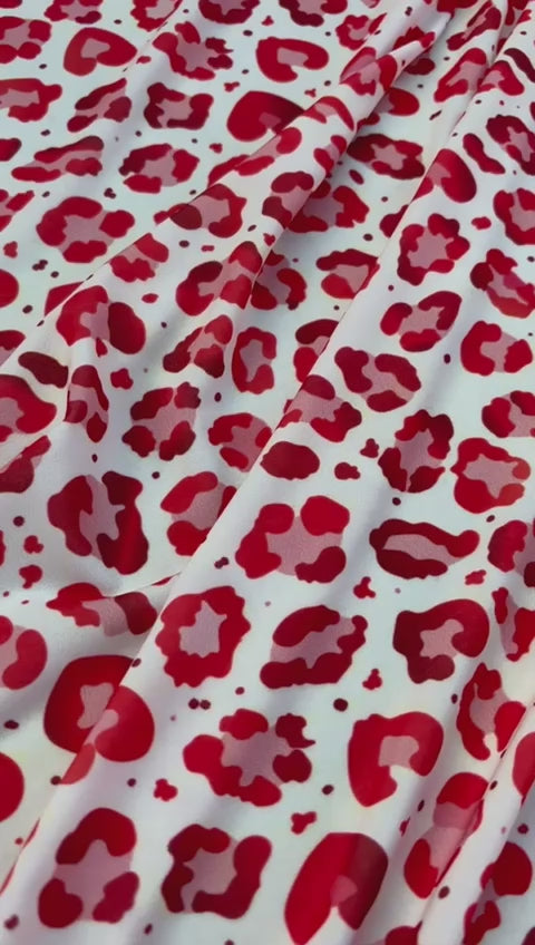 A playful red heart leopard print on a soft, drapey ITY base. Lightweight with excellent stretch and movement, perfect for comfortable, flattering garments.